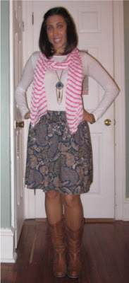 Last week was a long week. A week of ups and downs. This outfit was definitely an "UP" in last week. If you don't count my boots and bag, the whole outfit cost $30.00. Not to shabby! This is one of my many work outfits. For the most part I'd say this look is somewhat professional. Okay, I could have worn flats, but it would have taken away from my "Little House on the Prairie" look!